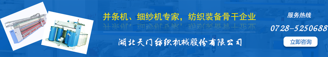 湖北天門紡織機械股份有限公司發(fā)軔于1954年,自上世紀80年代初被原紡織工業部指定為棉紡并條機專業生產廠家,一直專注實業,深耕紡織裝備,底蘊深厚,源遠流長。現為中國紡織機械協會副會長單位、全國紡織機械與附件標準化技術委員會委員單位和棉紡并條機行業標準制定牽頭單位,素有“并條專家”雅號。